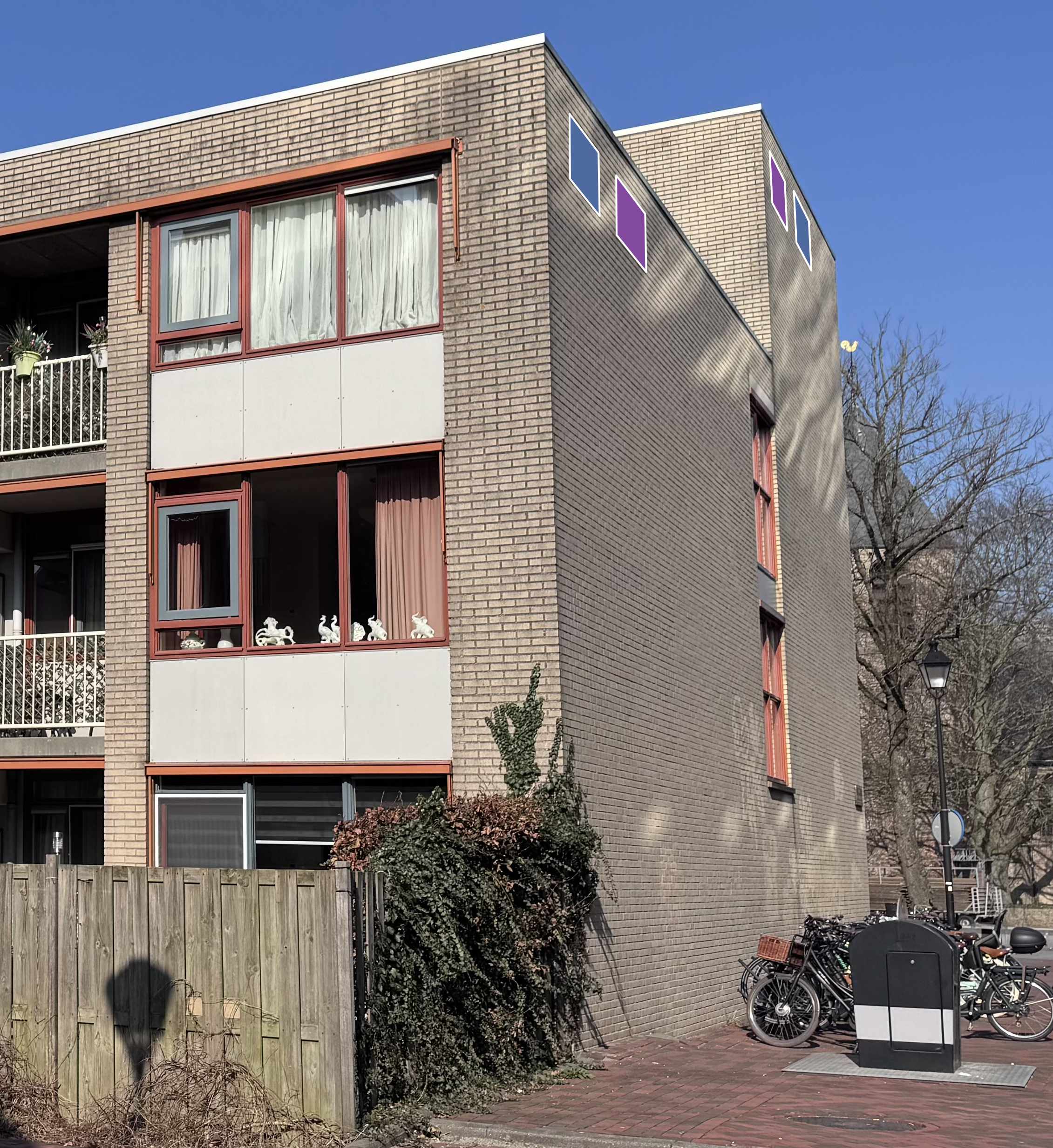 Voor het verbeteren van de leefomgeving van vleermuizen plaatsen we op verschillende gevels vleermuiskasten. Het uitgangspunt is dat per gevel één kast wordt aangebracht. Soms melden meerdere bewoners zich aan op dezelfde locatie. In dat geval kunnen er twee kasten op één gevel worden geplaatst.