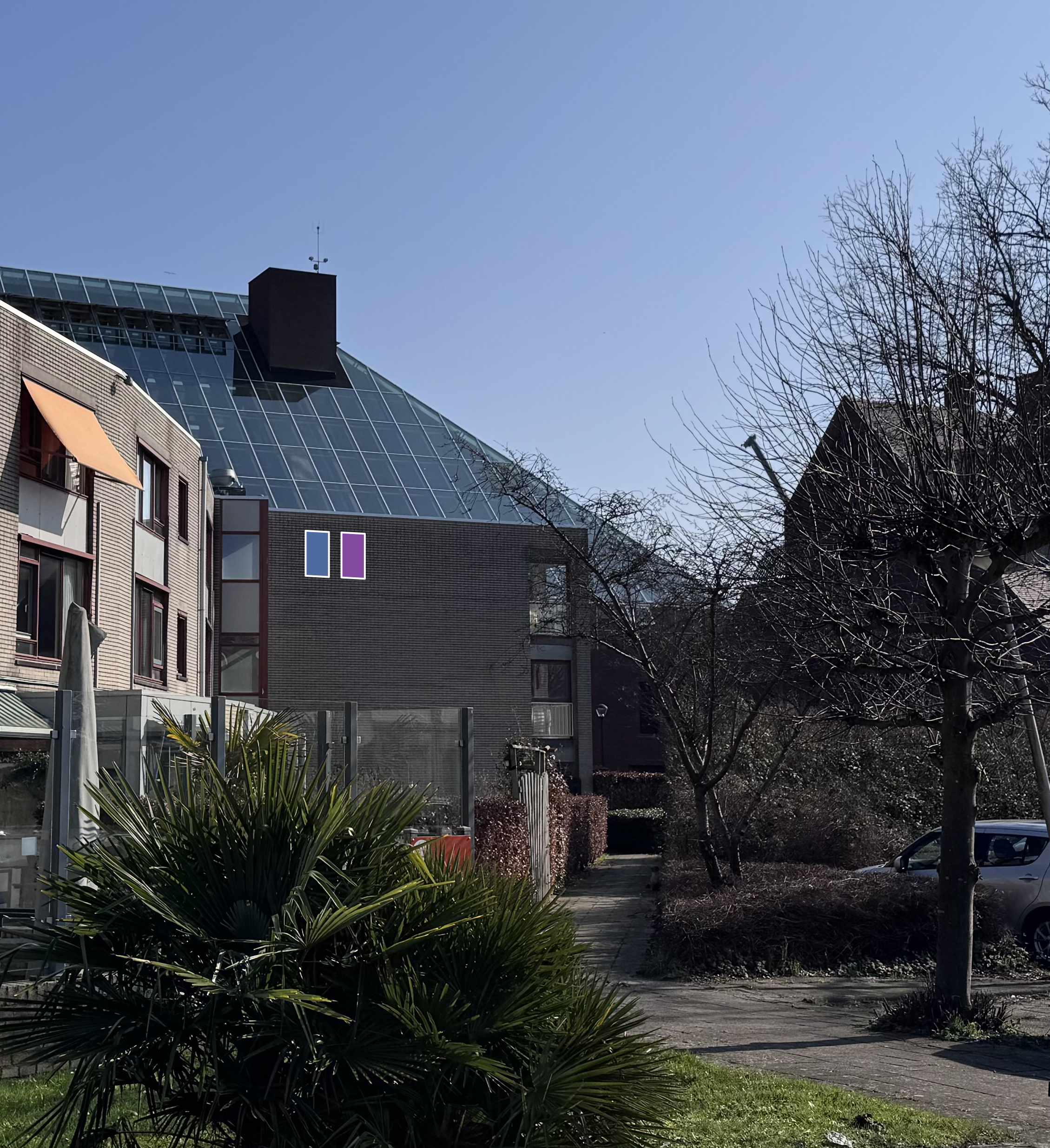 Wanneer u naar de foto hieronder kijkt, ziet u niet alleen de Ontmoetingskerk en de voormalige pastorie. U kijkt naar een stukje leefwereld dat wij delen met een bijzondere, vaak onzichtbare buur: de vleermuis. Binnen een straal van 200 meter rondom deze locatie heeft een ecoloog zorgvuldig onderzocht waar deze dieren zich kunnen verschuilen, rusten en foerageren.